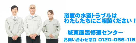 城東風呂修理センターは大阪市城東区の浴室修理専門業者です。シャワーの水漏れ、水圧が弱い、排水溝の流れが悪い、水栓の交換がしたいなどお気軽にお問い合わせください。