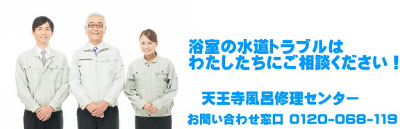 天王寺風呂修理センターは大阪市天王寺区の浴室修理専門業者です。シャワーの水漏れ、水圧が弱い、排水溝の流れが悪い、水栓の交換がしたいなどお気軽にお問い合わせください。